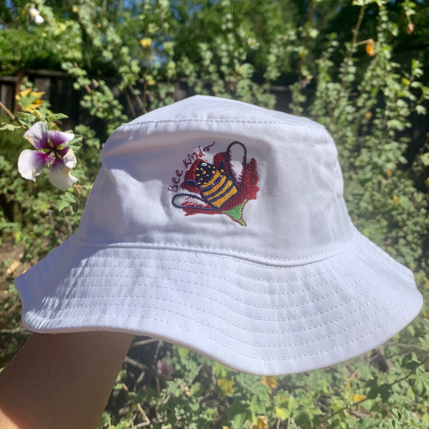 one of a kind hand embroidered bucket hat to spruce up your outfit for any occasion. machine washable & made to brave the elements.