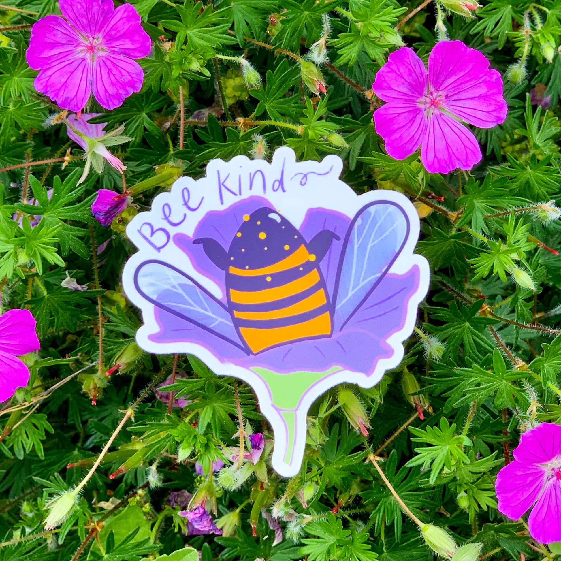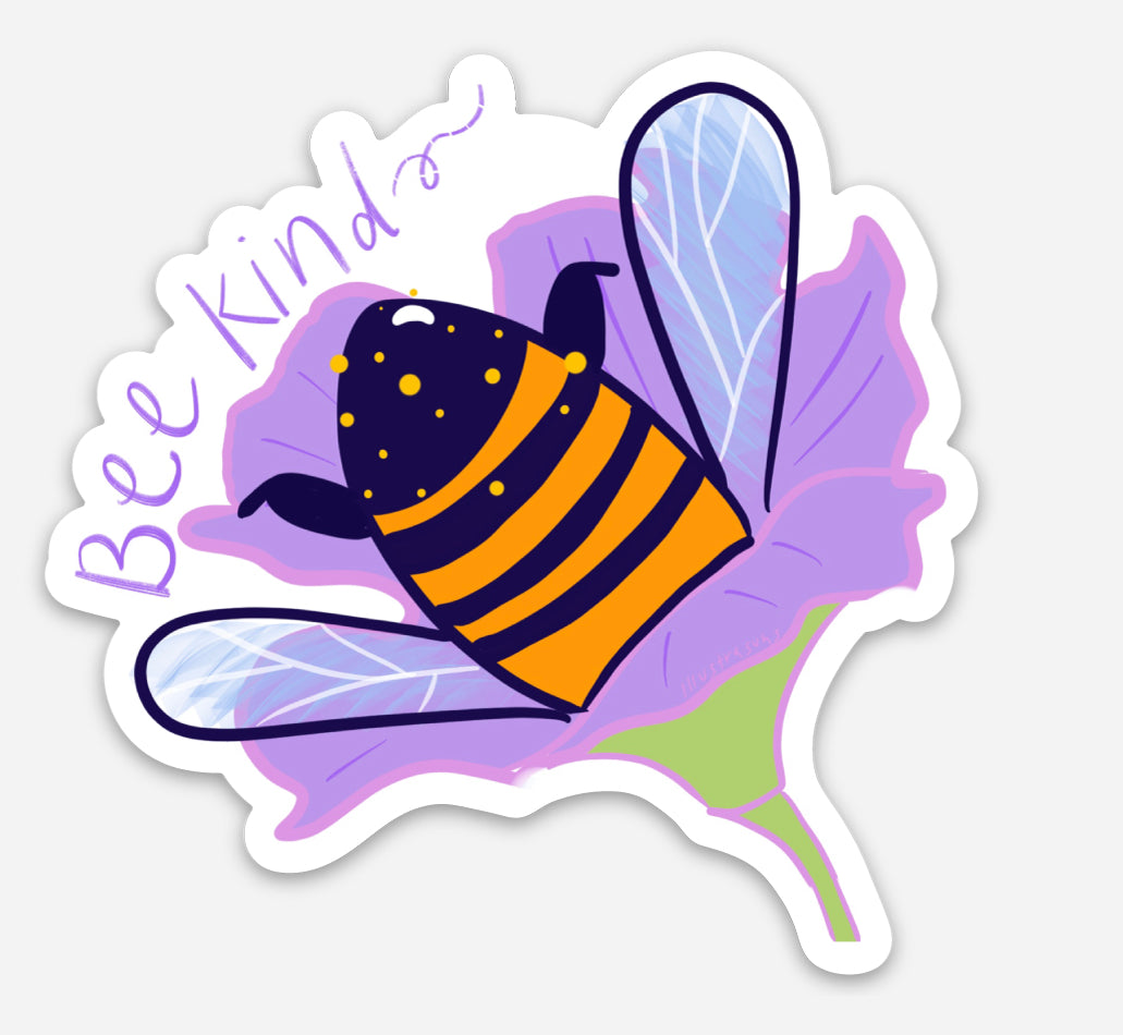 this sticker was inspired by the cute little bees buzzing around sunny's backyard garden.