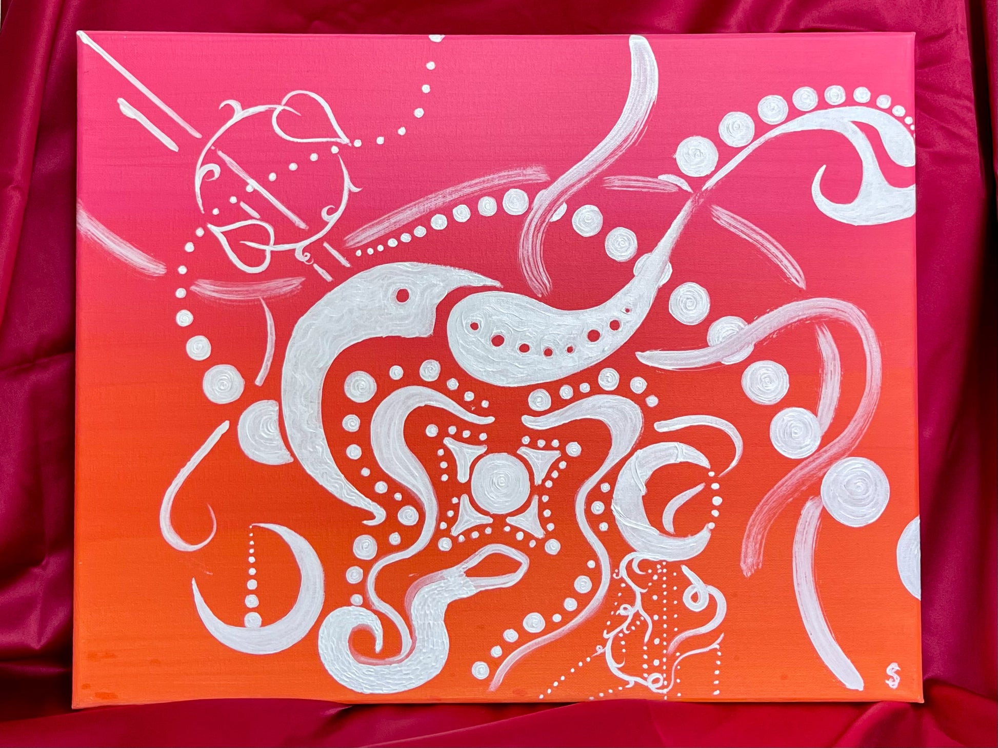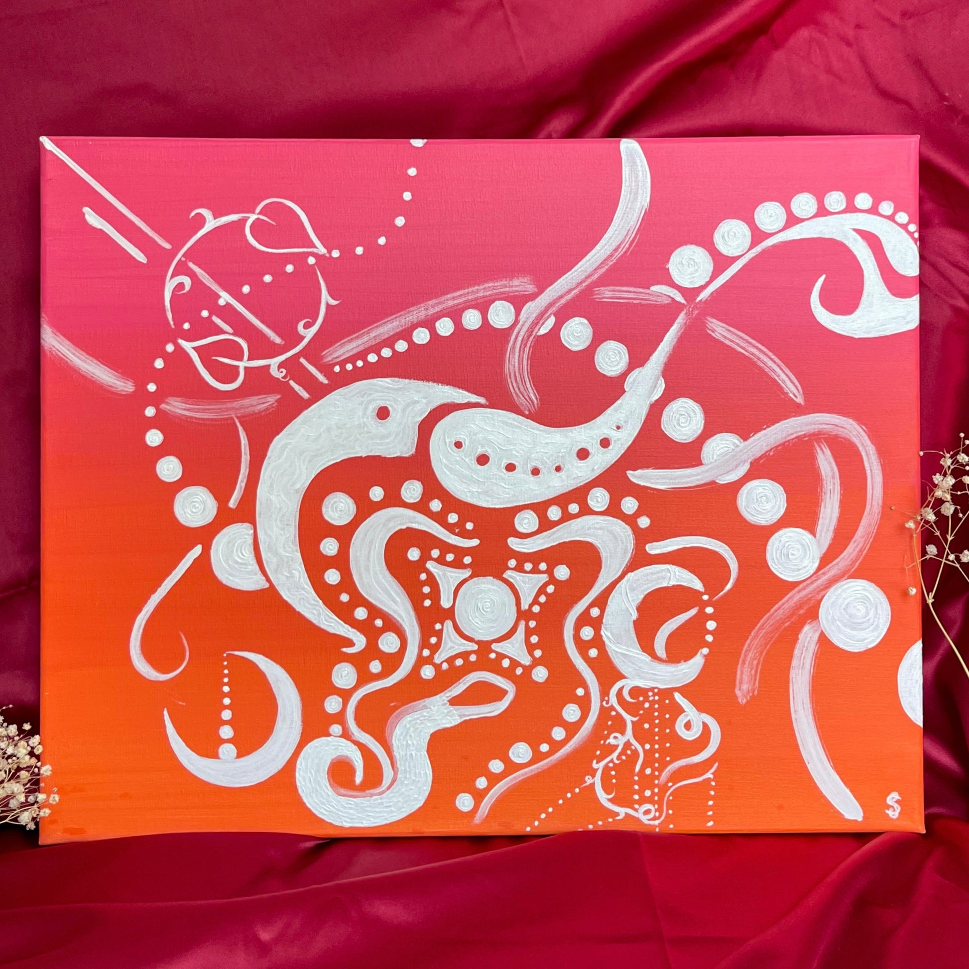 one of one original painting. hand signed and authenticated by sunny shan. this original piece is embellished with gold metallic paint and is coated with a layer of glossy varnish to protect the painting and promote its longevity.