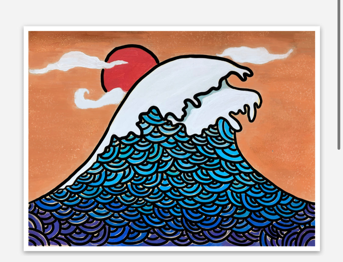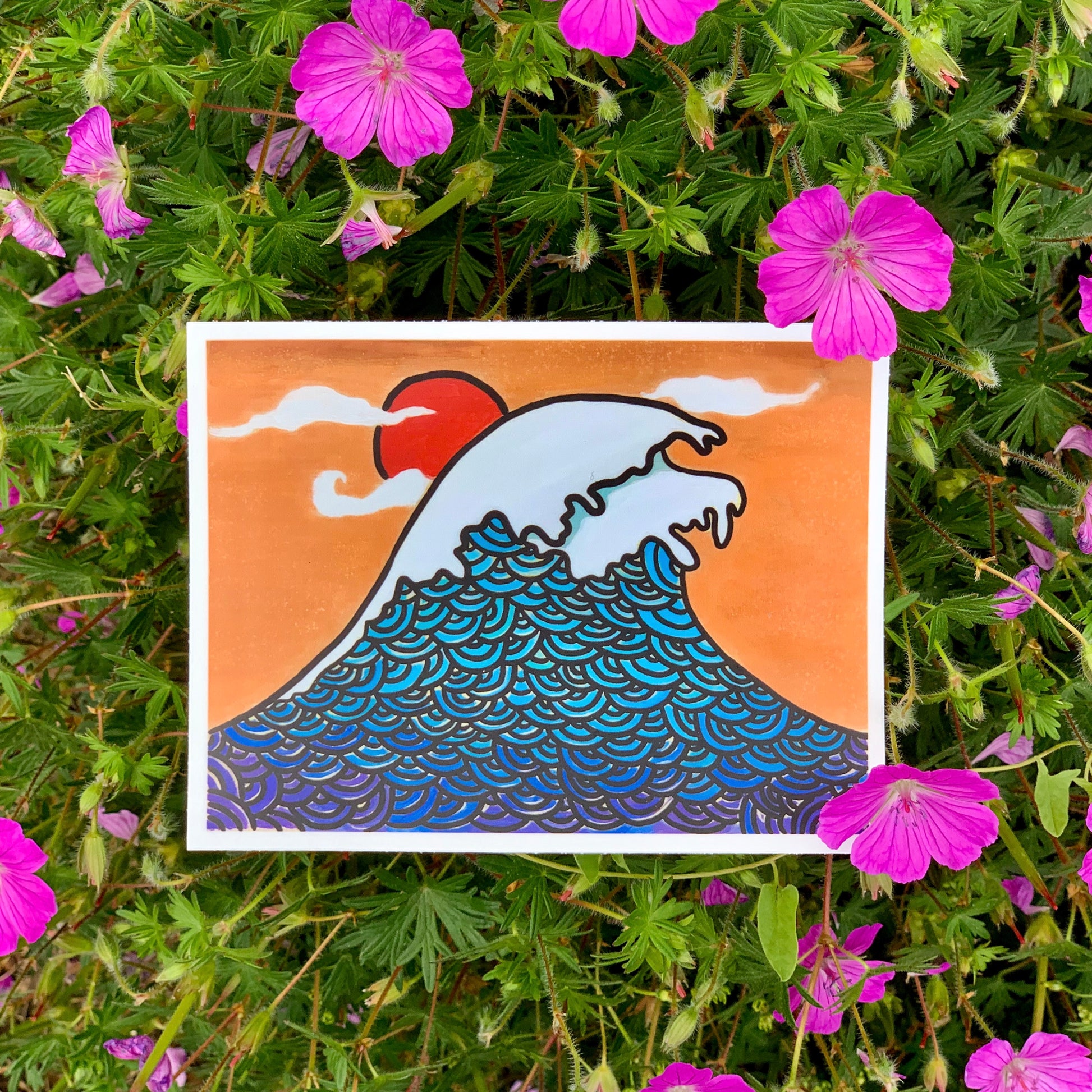 this sticker was inspired by sunny's love for japanese print making and hokusai's great wave off kanagawa.
