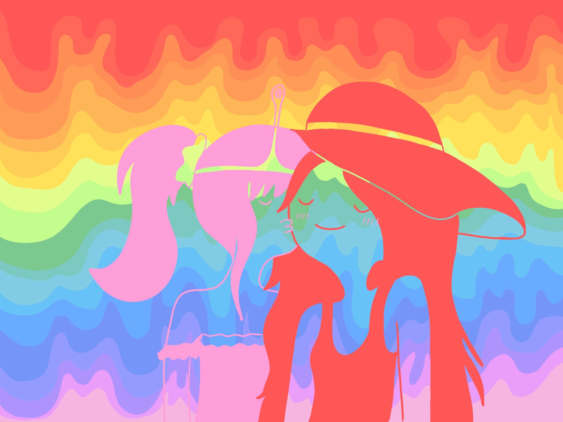 this is sunny's first ever pride piece inspired by her love for adventure time and her own queer pride. sunny first came out during pride month of 2015 and has been coming out to her family and friends over time.
