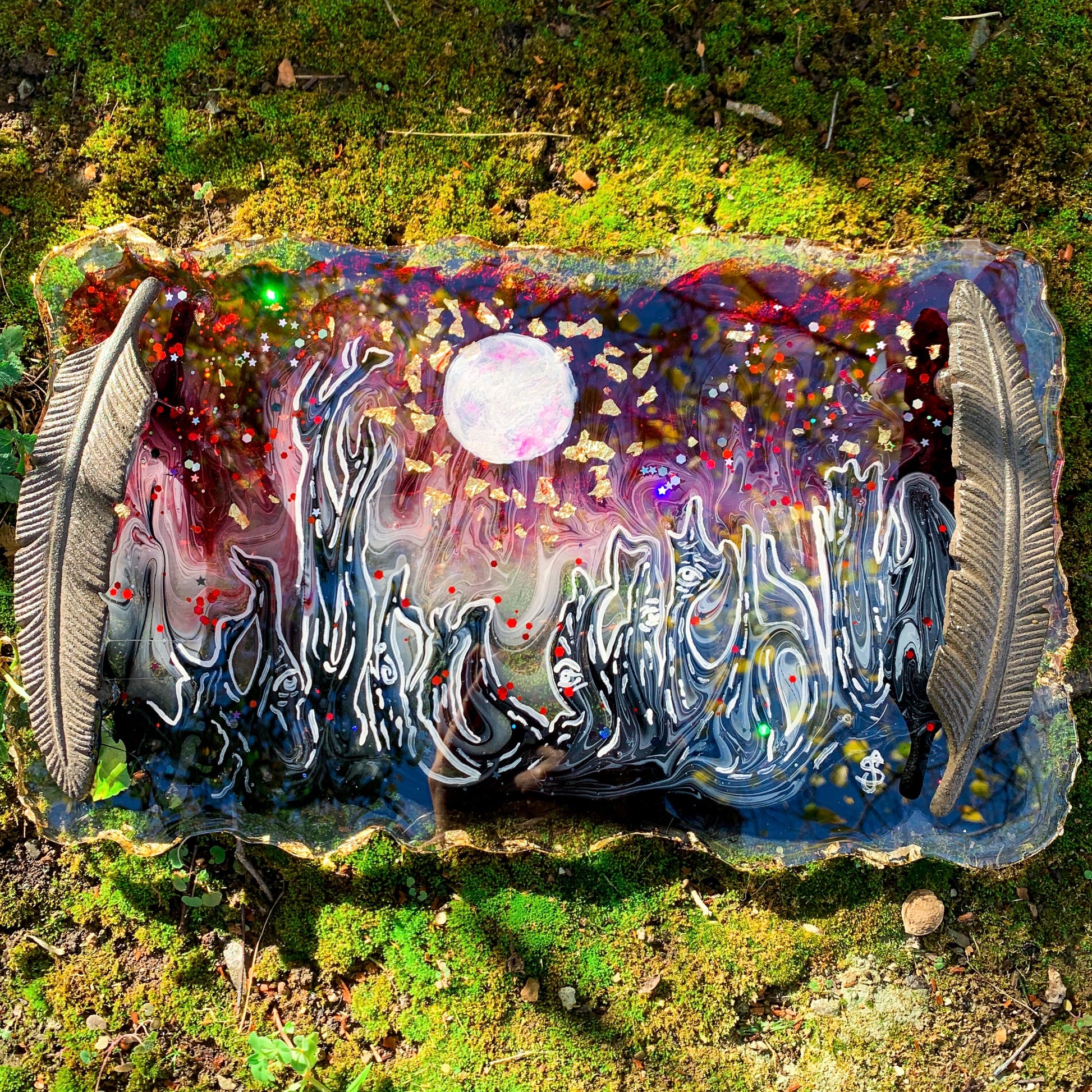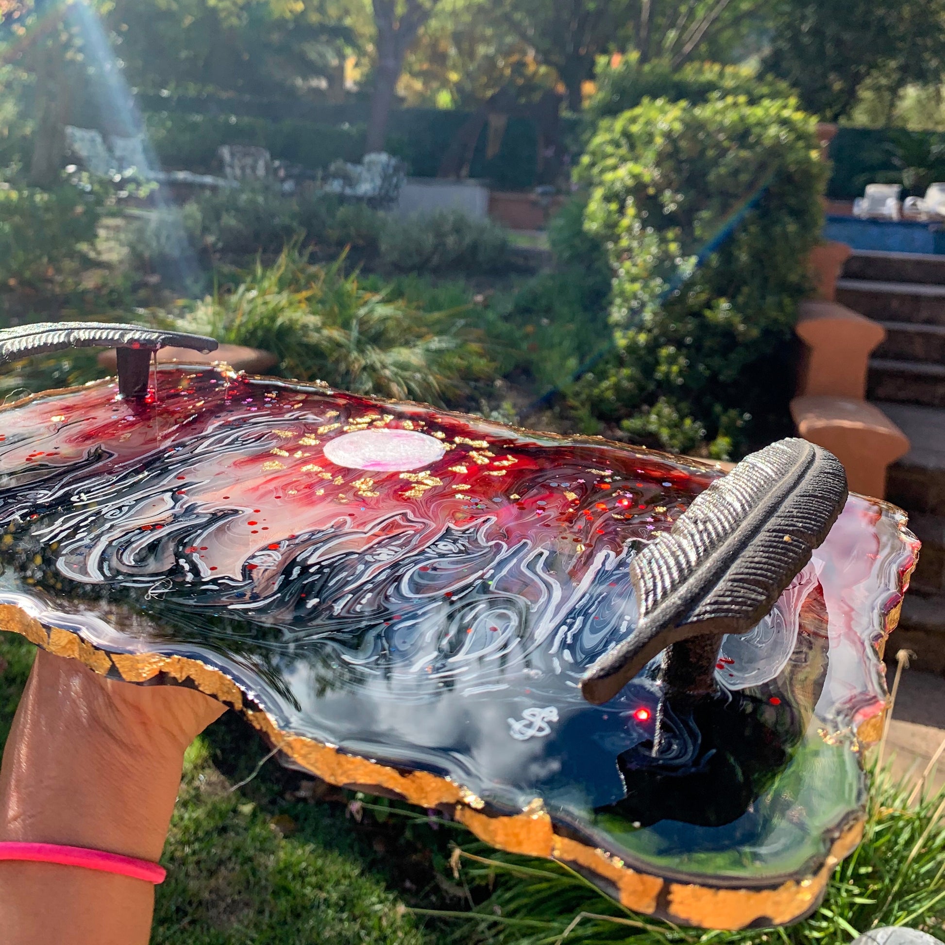11x14 inch XL resin tray. Artfully hand painted and made with resin.