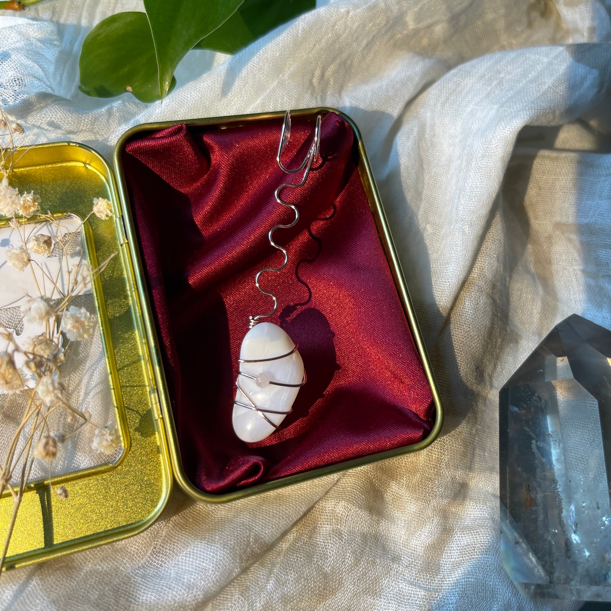 one of a kind stunning snow quartz wrapped in tarnish resistant rose gold wire. each joint holder is fully adjustable to fit j's and blunts of any size. pairing your highs with this stunning crystal will bring you mental clarity and emotional stability. each j holder comes with a hand crafted satin-lined tin so you can stash your j's and holders together on all your adventures